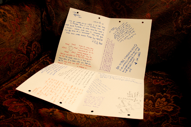 To read, she unties the ribbon, unfolds the pages and find all her messages inside.
