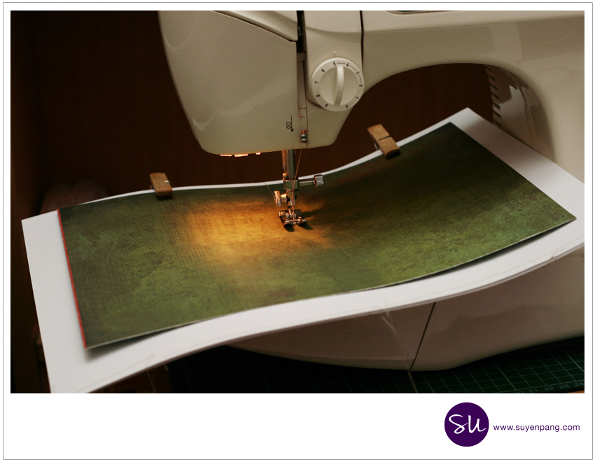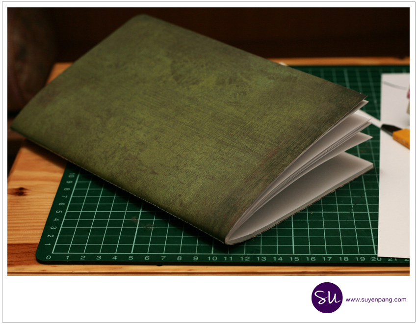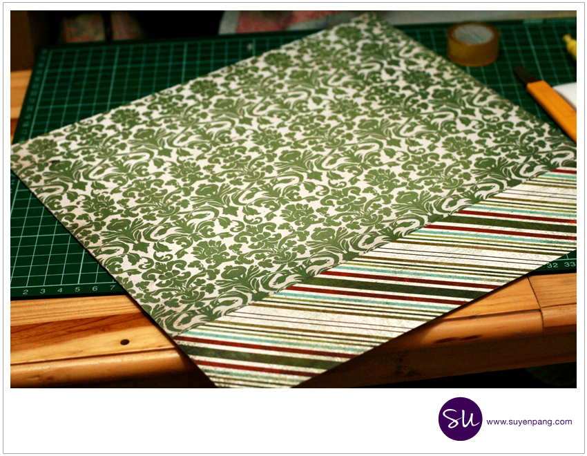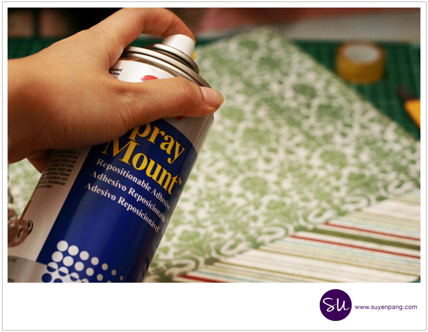 For the cover, I took the two pieces of different patterned cardstocks and attached them back-to-back with a thin coat of spray mount. This gave it extra thickness 🙂